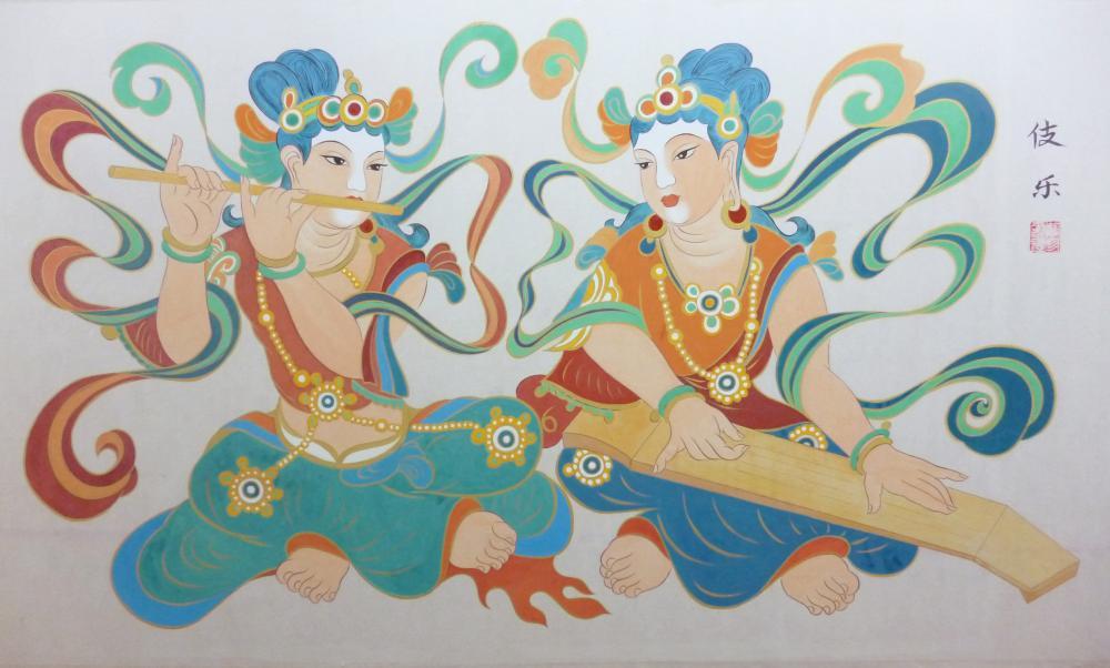 敦煌石窟壁画中有极其丰富的古代乐伎形像和乐器图像